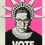 Bronze statue of three women standing on a tall, cylindrical platform in a circle with their backs to each other, holding hands. There's another statue of a young woman standing off to the side looking up at the three