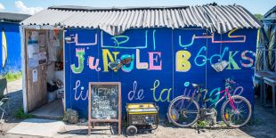 Banner image: Jungle Books Library, The Jungle refugee camp (since destroyed), Calais, France. Photograph by Robert Dawson.