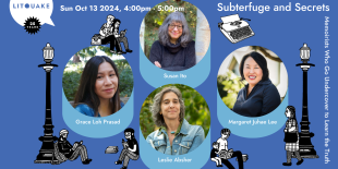 How do memoirists fill in the gaps when there are missing pieces in their research—for example, when the person with needed information died long ago or when gender, culture, language, or other barriers thwart the process? These obstacles require memoirists to get crafty. This might mean using creative nonfiction to write imagined scenes or even require lying, eavesdropping, and/or employing subterfuge to gain access to something off-limits. Susan Kiyo Ito, Margaret Juhae Lee, Grace Loh Prasad, and Leslie Absher will present how they used “unofficial” means to get at the truth, and, in essence, became spies in their own stories. Presented by Litquake.