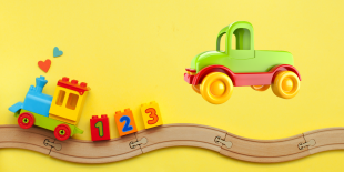 Build a track with a wooden train set or play with toy trucks.