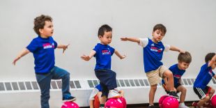 In these parent/caregiver participation classes Super Soccer Stars coaches and puppet friends, Mimi and Pepe, take toddlers through a world of exciting physical activity. Super Soccer Stars use soccer balls to help children develop soccer skills, as well as improve self-confidence, teamwork, physical literacy and socialization skills.