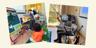 Nourish early literacy, music skills and motor development by making music with the guidance of a skilled facilitator. For children ages 0-6 and their caregivers.